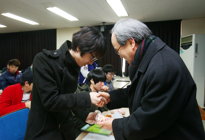 우리대학이 기초교육 강화를 위해 시행하고 있는 겨울 특별학기 수업을 받고 있는 학생들을 격려하는 행사를 가져 학생들의 큰 호응을 얻었다.