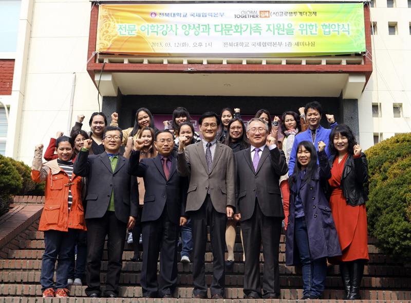 국제협력본부는 3월 12일 오후 2시 (사)글로벌투게더김제(이사장 최원규)와 업무 협약을 체결하고 다문화 가정 결혼 이주여성들이 전문 어학 강사로 활동할 수 있도록 교육 프로그램을 운영하기로 했다.
