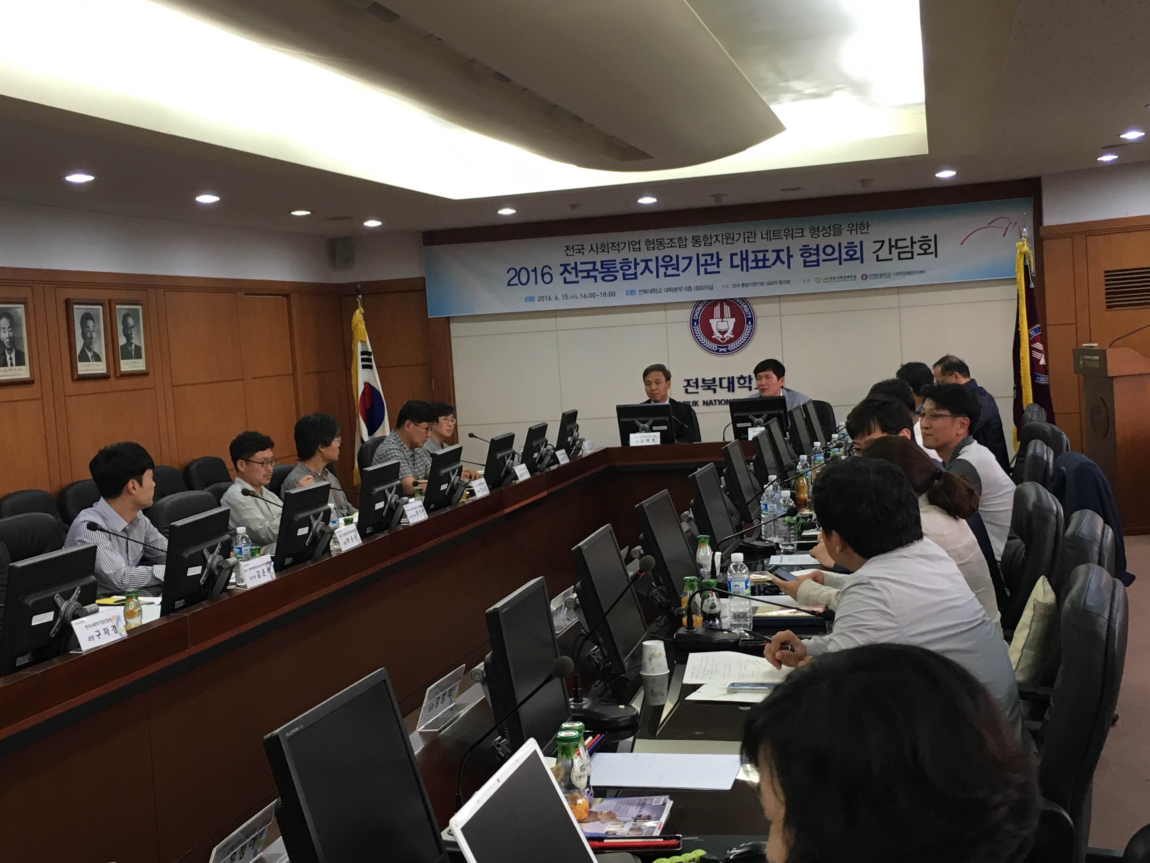 우리대학 사회적경제연구센터와 사단법인 전북사회경제포럼이 공동 주관한 ‘전국 사회적기업 협동조합 2016 전국통합지원기관 대표자 협의회(회장 유남희 교수)’가 지난 6월 15·16일 본부 8층 회의실에서 개최됐다.