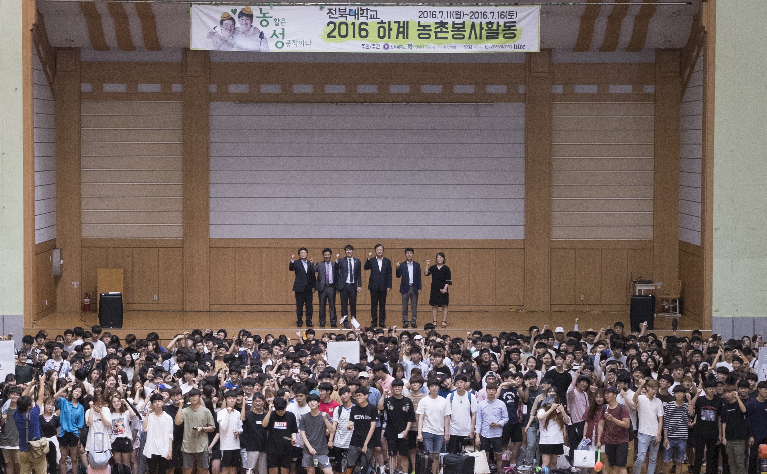 우리대학은 7월 11일 오전 10시 대학 체육관에서 신양균 교학부총장을 비롯한 대학 보직자들과 참여 학생 등 1천 여 명이 참석한 가운데 2016년도 하계 농촌봉사활동 발대식을 가졌다.