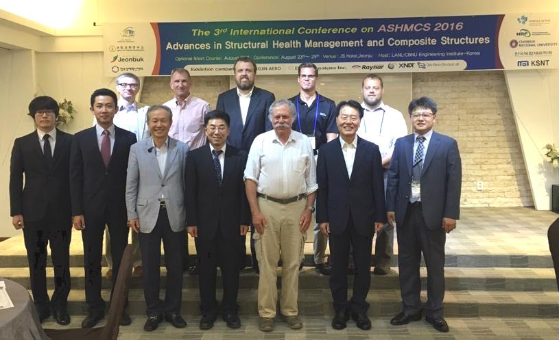 세계 최고 연구소인 미국 로스알라모스연구소와 국제공동연구를 진행하고 있는 로스알라모스연구소-전북대 한국공학연구소가 8월 22일부터 25일까지 전주 JS호텔에서 국내외 7개국 110여명이 참석한 가운데 선진 구조건전성관리 및 복합재 구조 국제학술대회 (Advances in Structural Health Management and Composite Structures)를 성공리에 개최하였다.