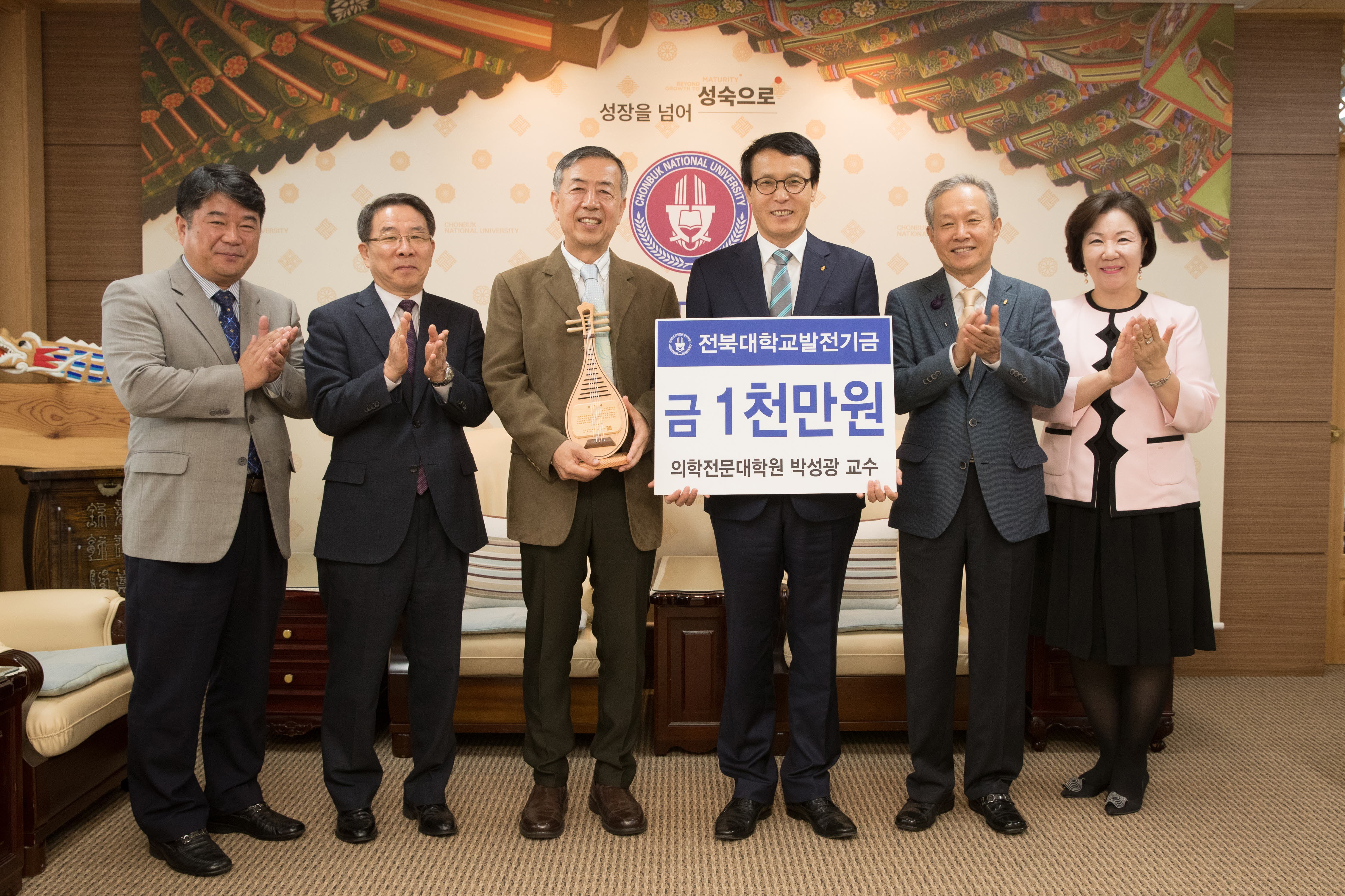 우리대학은 10월 12일 오전 10시 박성광 교수를 초청, 이남호 총장을 비롯한 본부 보직자들이 참석한 가운데 발전기금 기탁식을 갖고 감사패를 전했다.
