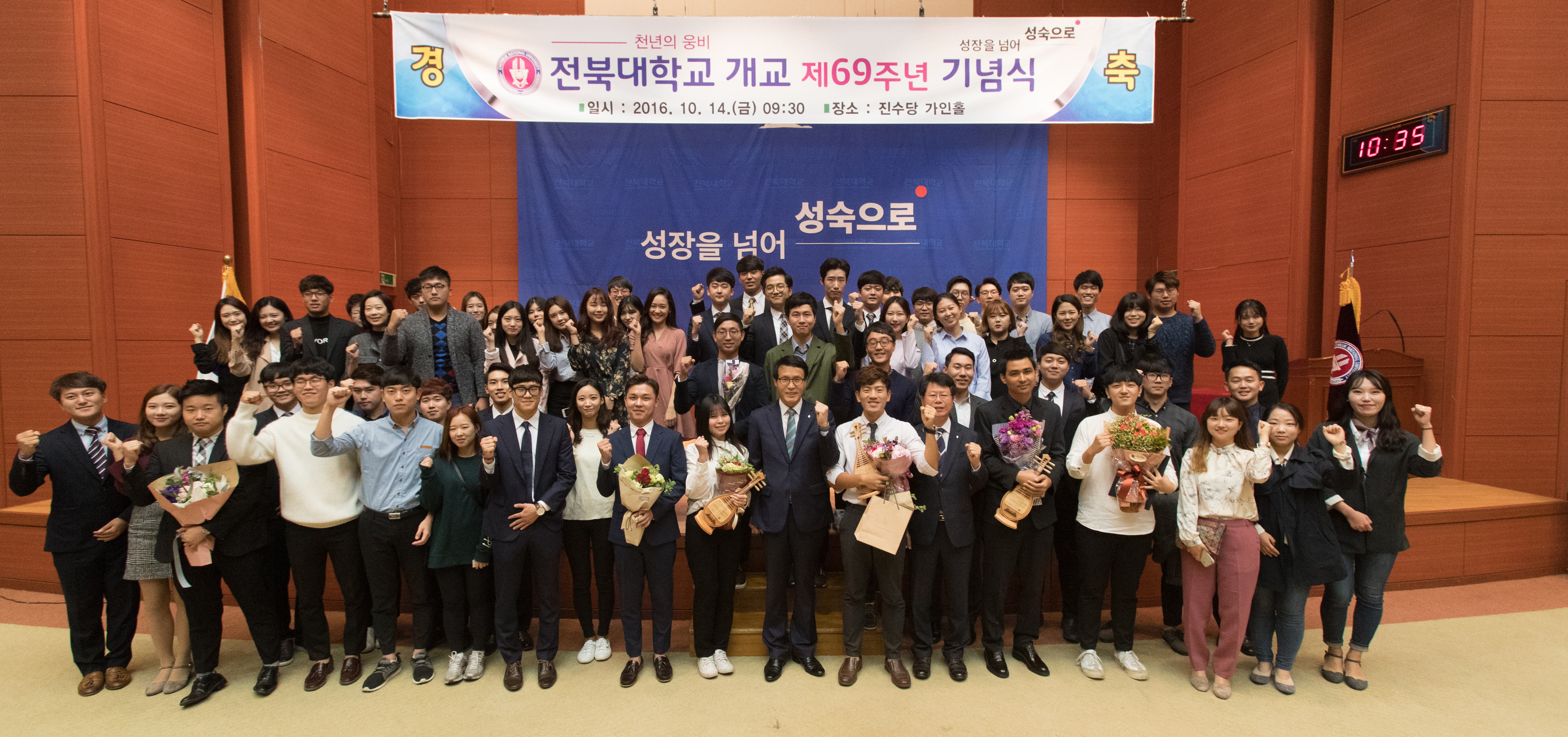 이남호 총장은 기념식사를 통해 “우리대학은 개교 이래 끊임없는 변화와 혁신을 통해 최근 국내외 대학평가에서 국립대 2위, 전국 종합대학 10위권의 위상을 확고히 했다”며 “대학 안팎의 악조건 하에서도 이러한 결실을 맺기까지 교수님과 직원 선생님, 그리고 학생 여러분의 힘겨운 노력이 있었기 때문”이라고 운을 뗐다.