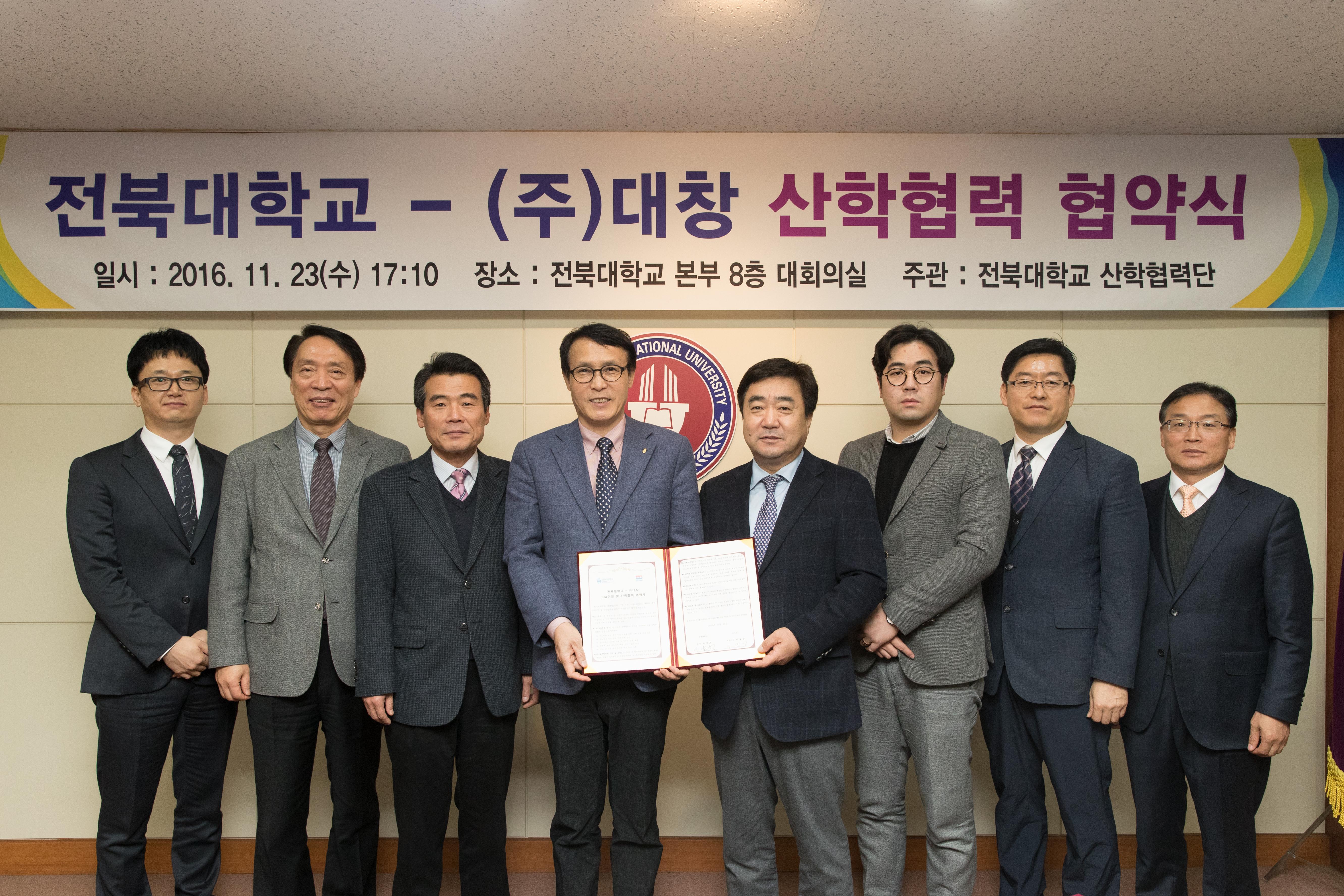 우리대학과 ㈜대창은 11월 23일 오후 5시 이남호 총장과 이길상 대표이사 등 양 기관 주요 관계자들이 참석한 가운데 기술이전을 위한 협약식을 가졌다.
