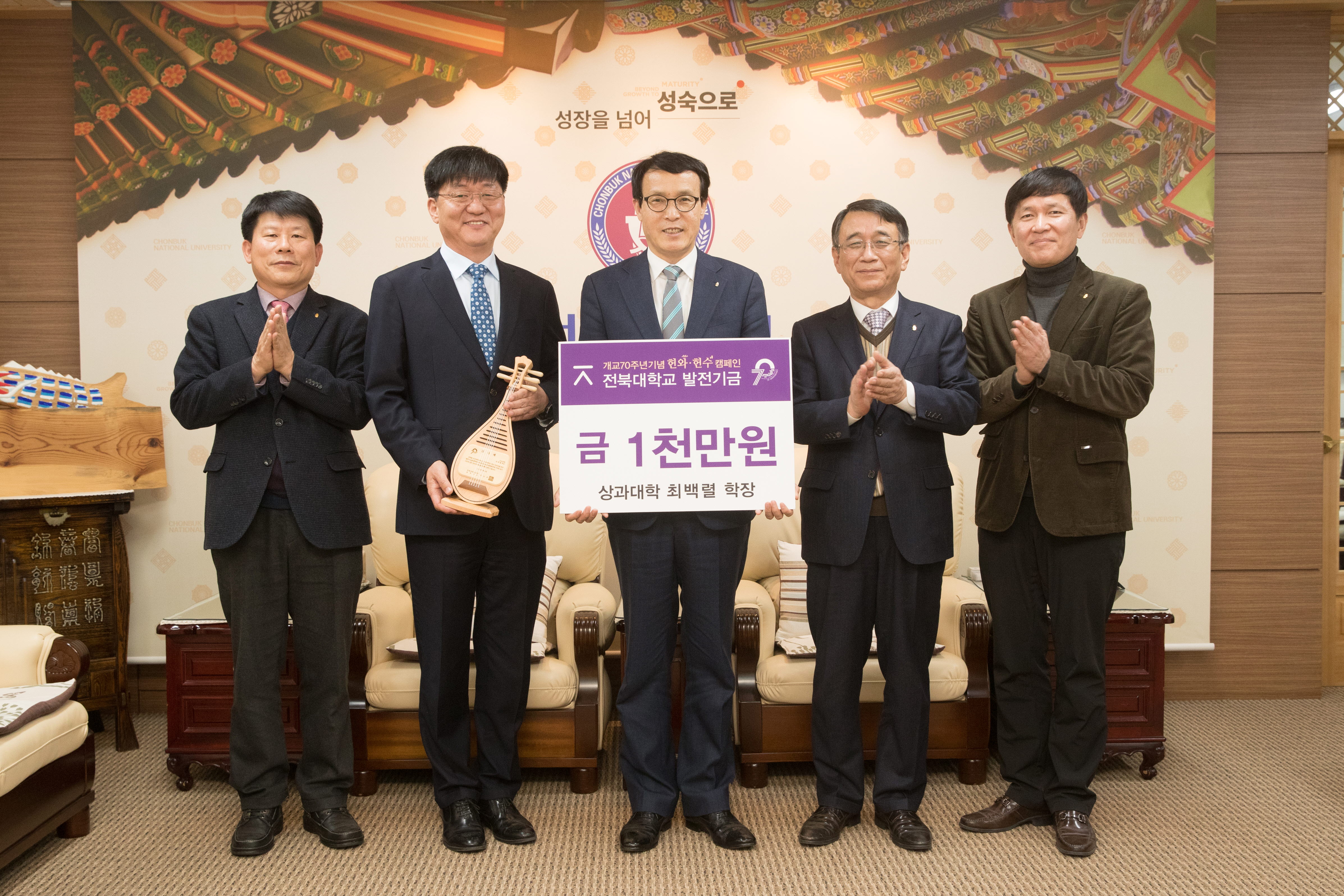 이남호 총장은 1월 4일 오후 4시 최 학장을 총장실로 초청, 발전기금 기탁식을 갖고 감사패 전달 등을 통해 대학 발전에 힘을 보태준 것에 대해 감사의 뜻을 전했다.
